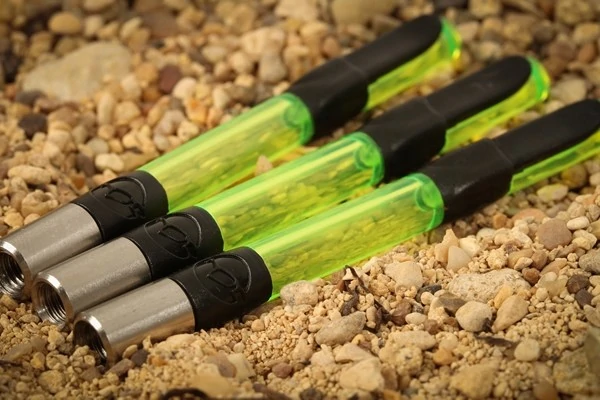 These feature a complete Stow Indicator set-up with all the bits that you need, barring an isotope. These are based on the handmade Elstow bobbins which have achieved cult status, keeping all of the best bits which made them so popular, and also adding some improvements. The Stow Indicator can be fished with either a slack or a tight line, and when you get a take it will unclip itself from the line as it hits your alarm. It can be used with any type of bite alarm using the magnetic hockey stick attachment with is supplied, and two different lengths of stainless steel chain are supplied so that you can ensure it works properly and always pings free of your line when required to do so. The clip will hold your line securely without causing any damage to it, and the body is extremely lightweight and very sensitive to any movement of the line. Additional weights are available in either 6g or 8g sizes, and neatly fit onto the body without making it any longer. Spare heads in different colours, plus spare hockey sticks are also available. There is a choice of colours: green, red, yellow, blue, white, or purple.