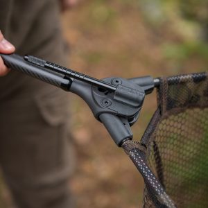 The ultimate solution for easy landing net set-up and break-down. At the heart of the design is a unique moulded, glass-filled nylon spreader block with a removable lever. The leaver is simply pushed in open the arms or pulled out to collaps them, making set-up and pack-down fast, easy, and fail-safe. The landing net arms feature magnetic arm sleeves that pull securely into the spreader block. Once in place, the lever can be operated effortlessly with one hand to lock the arms firmly into position—and just as easily reversed to collapse them. For added versatility, the lever can be screwed securely into the spreader block to create a retaining feature when used with the bankstick or storm pole retaining collar. This collar drops neatly into Fox Camlok banksticks and Storm Poles and locks securely with the cam system. The 2K carbon pole features a reduced taper design, improving flex while ensuring superb stiffness. A shrink wrap handle offers enhanced grip, and a stainless-steel pointed butt cap provides durability. The camo mesh completes the premium build, blending performance with style. Available with 42-inch arms, paired with either a 6ft one-piece pole or an 8ft two-piece pole.