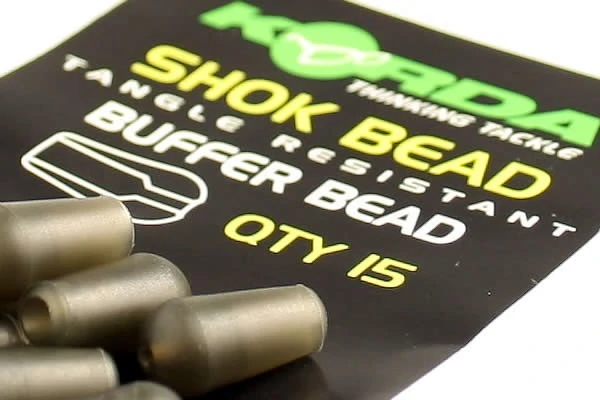 This has been designed for a multitude of uses. Its unique shape helps to prevent tangles and the cavity at the narrower end will hold a size 8 swivel securely within it. The Shok Bead is ideal for running rigs, marker floats or any set up that requires a buffer bead, and it comes in a low-viz green colour. Pack of 15.